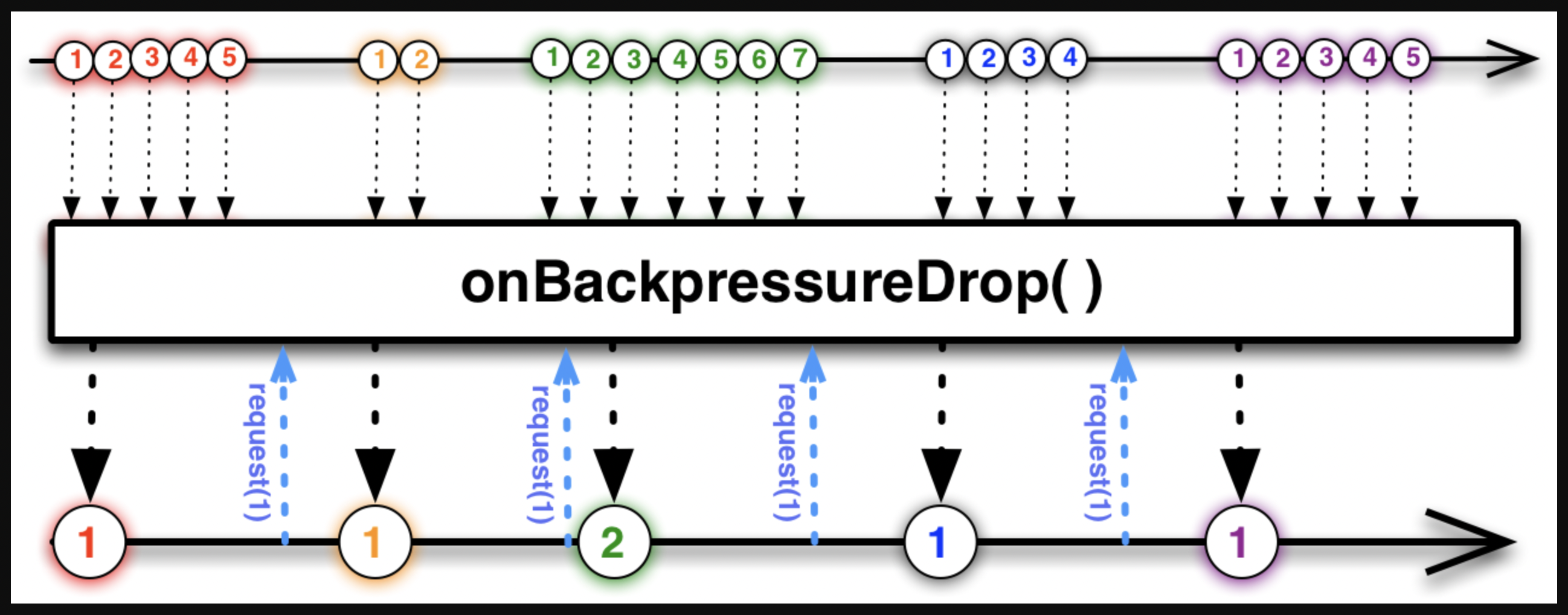 - BackpressureStrategy.DROP : 소비가 불균형할 때 데이터를 버립니다.
