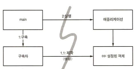 모든 화살표가 main에서 애플리케이션으로 향한다. 즉, 애플리케이션은 main이나 객체가 생성되는 과정을 모른다.